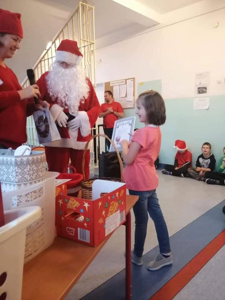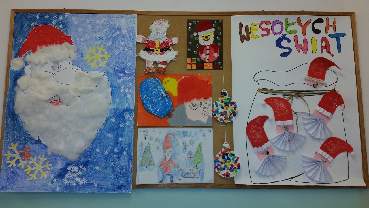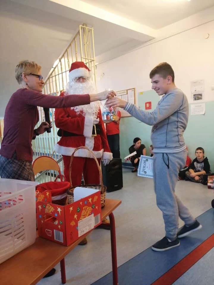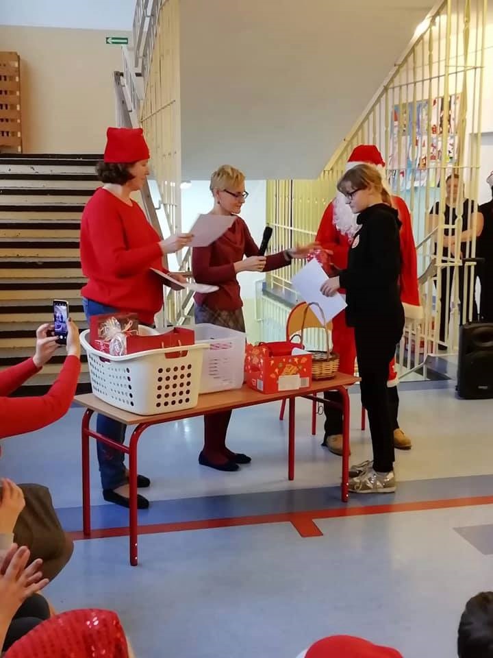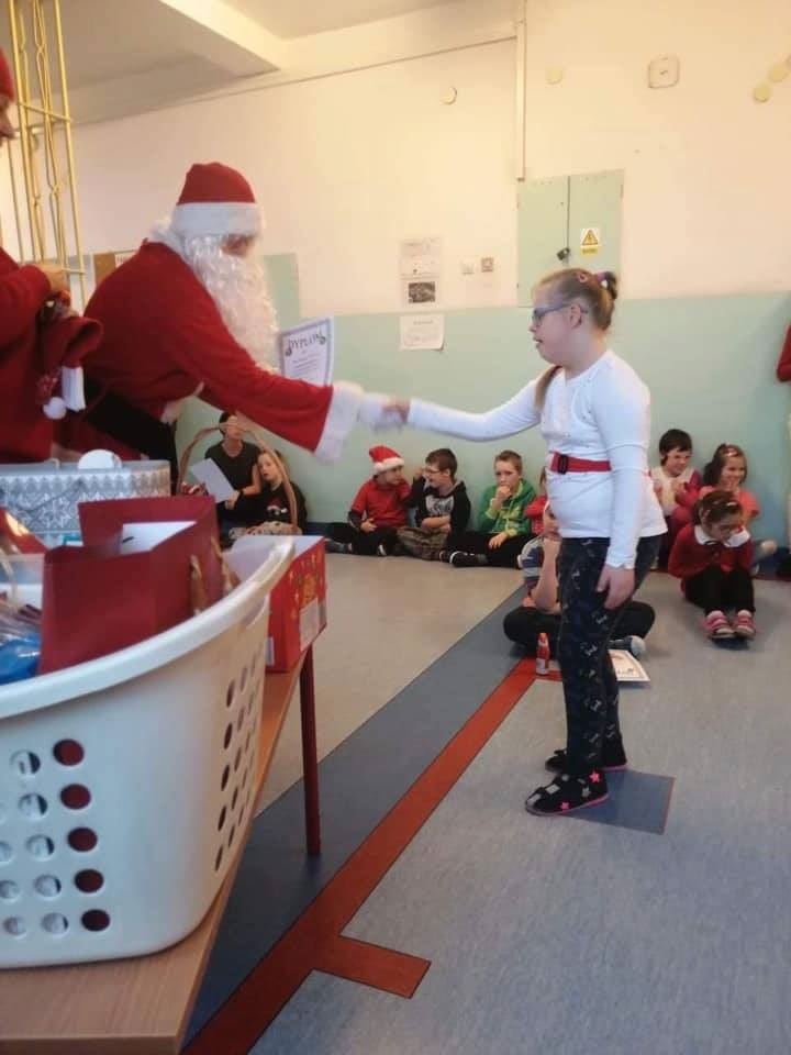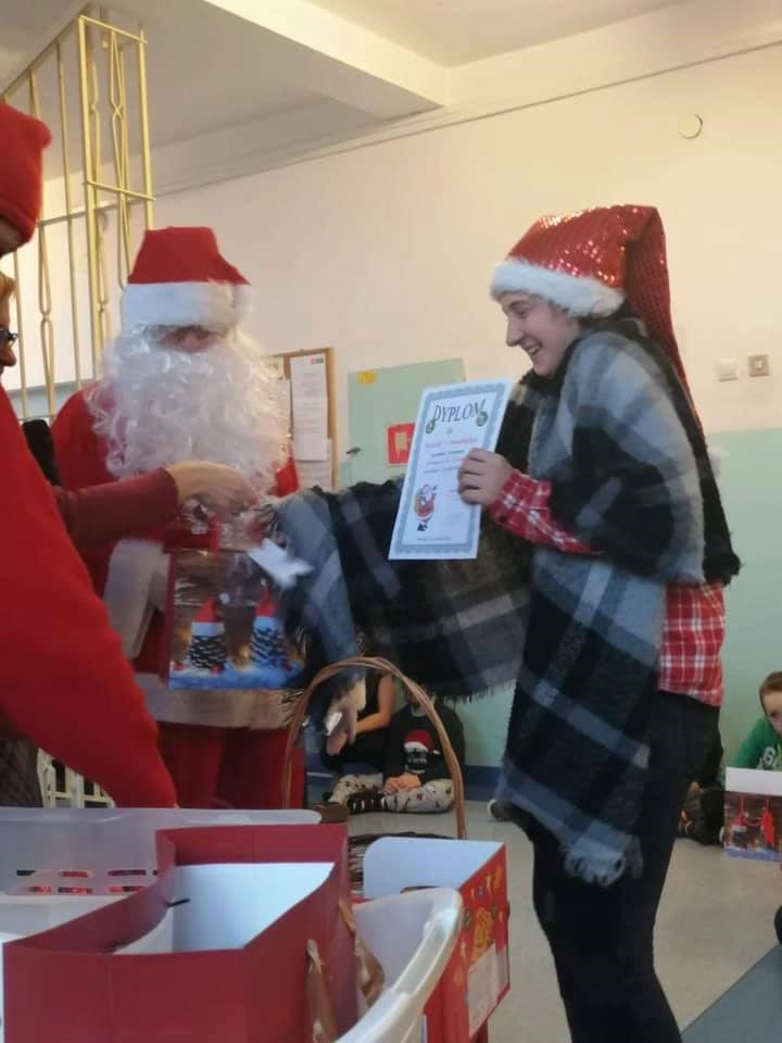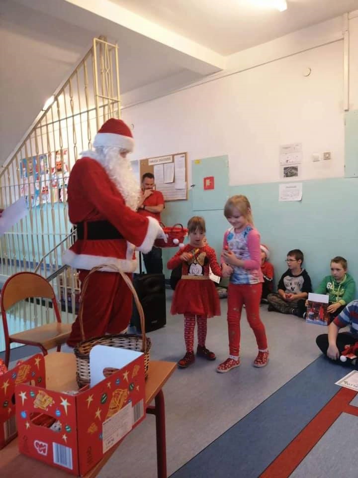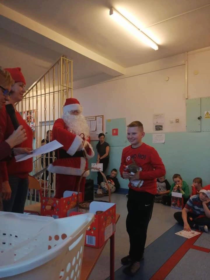 Mikołajki są, od kilku lat w naszej szkole, wielkim wydarzeniem. Od samego rana kręciły się po korytarzach i w klasach dzieci ubrane w biało czerwone stroje, w pięknych mikołajkowych czapkach. Już na pierwszej godzinie Mikołaj odwiedził młodsze klasy, aby rozdać dzieciom drobne upominki. Następnie uczniowie zostali zaproszeni do udziału w zabawach i grach nawiązujących do czynności wykonywanych przez Św. Mikołaja. Było dużo radości i uśmiechu na twarzach uczniów oraz nauczycieli, a na koniec coś słodkiego od Rady Rodziców. Po poczęstunku odbył się apel, na którym ogłoszono zwycięzców konkursu plastycznego pt."Św. Mikołaj”. To był super dzień, zatem do zobaczenia za rok!!!