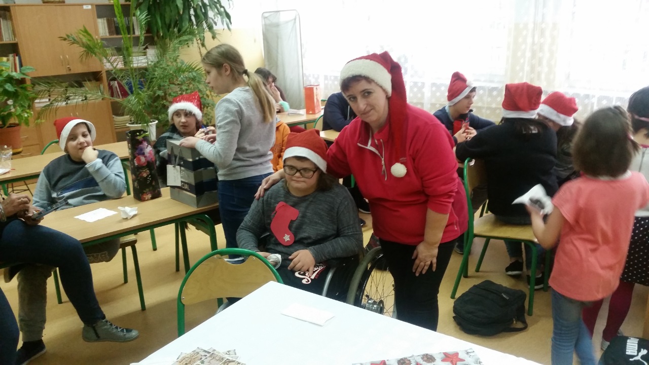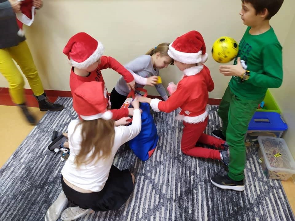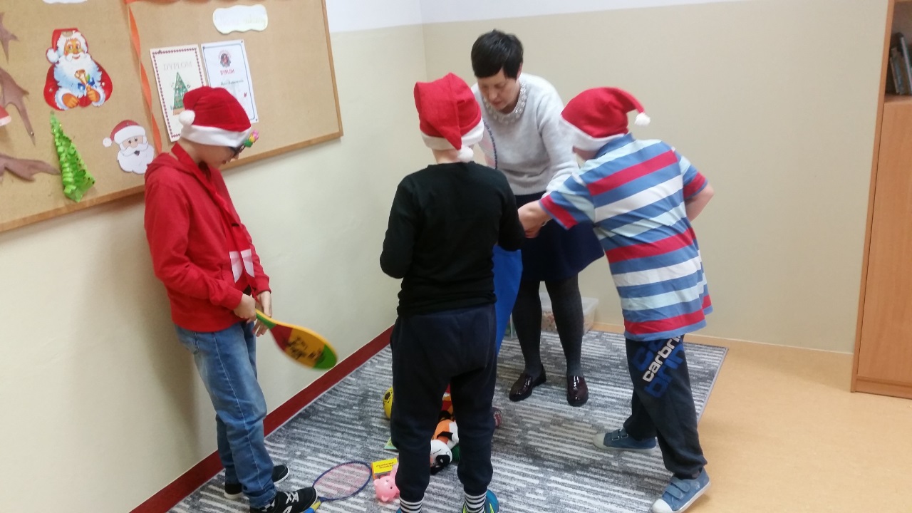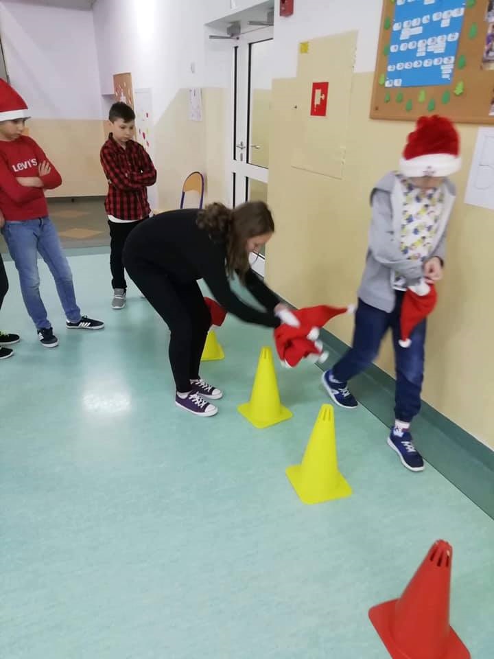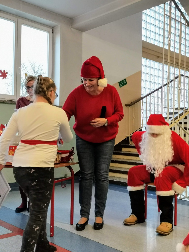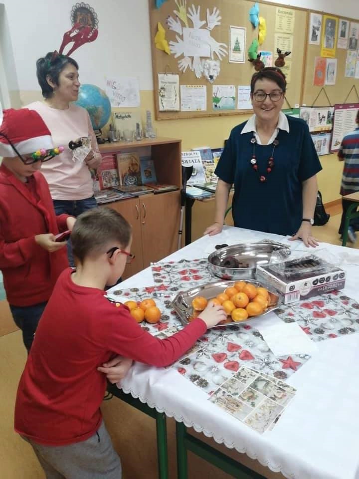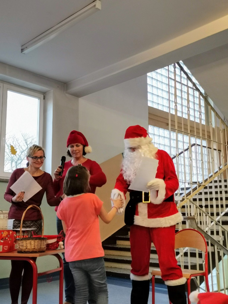 Mikołajki są, od kilku lat w naszej szkole, wielkim wydarzeniem. Od samego rana kręciły się po korytarzach i w klasach dzieci ubrane w biało czerwone stroje, w pięknych mikołajkowych czapkach. Już na pierwszej godzinie Mikołaj odwiedził młodsze klasy, aby rozdać dzieciom drobne upominki. Następnie uczniowie zostali zaproszeni do udziału w zabawach i grach nawiązujących do czynności wykonywanych przez Św. Mikołaja. Było dużo radości i uśmiechu na twarzach uczniów oraz nauczycieli, a na koniec coś słodkiego od Rady Rodziców. Po poczęstunku odbył się apel, na którym ogłoszono zwycięzców konkursu plastycznego pt."Św. Mikołaj”. To był super dzień, zatem do zobaczenia za rok!!!