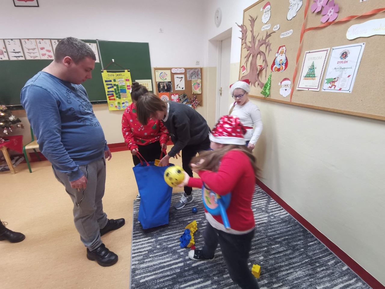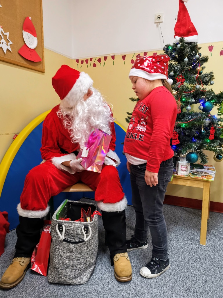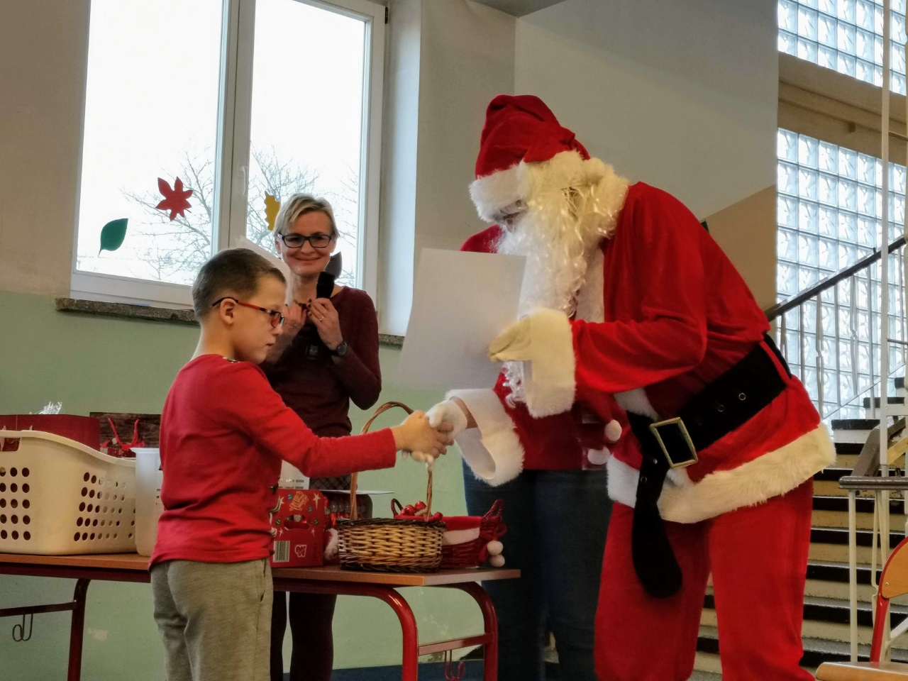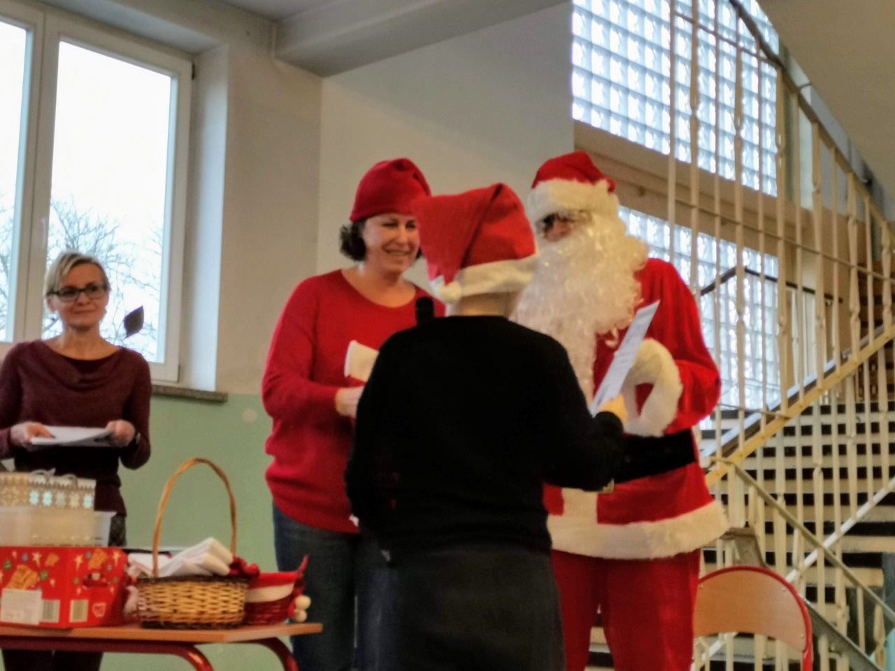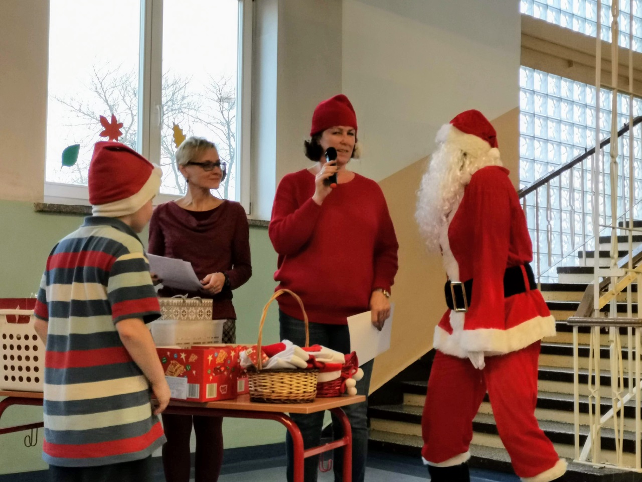 Mikołajki są, od kilku lat w naszej szkole, wielkim wydarzeniem. Od samego rana kręciły się po korytarzach i w klasach dzieci ubrane w biało czerwone stroje, w pięknych mikołajkowych czapkach. Już na pierwszej godzinie Mikołaj odwiedził młodsze klasy, aby rozdać dzieciom drobne upominki. Następnie uczniowie zostali zaproszeni do udziału w zabawach i grach nawiązujących do czynności wykonywanych przez Św. Mikołaja. Było dużo radości i uśmiechu na twarzach uczniów oraz nauczycieli, a na koniec coś słodkiego od Rady Rodziców. Po poczęstunku odbył się apel, na którym ogłoszono zwycięzców konkursu plastycznego pt."Św. Mikołaj”. To był super dzień, zatem do zobaczenia za rok!!!